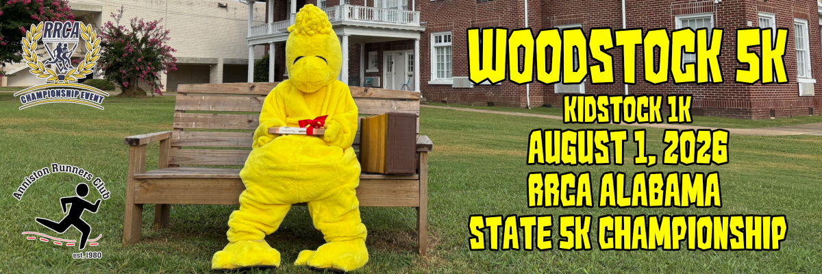 The Anniston Runners Club (ARC) and our members invite you to our premier annual event, the historic Woodstock 5K and Kidstock 1K! The 2026 race's RRCA championship event designation is the Alabama State 5K Championship, marking the 19th RRCA championship event hosted by Woodstock. The Woodstock 5K is a fun and healthy community event where more than 1000 runners and walkers come to shake their tail feathers! Go ahead and mark your calendar for August 1st, 2026, for one of the oldest continuous footraces in the southeast!