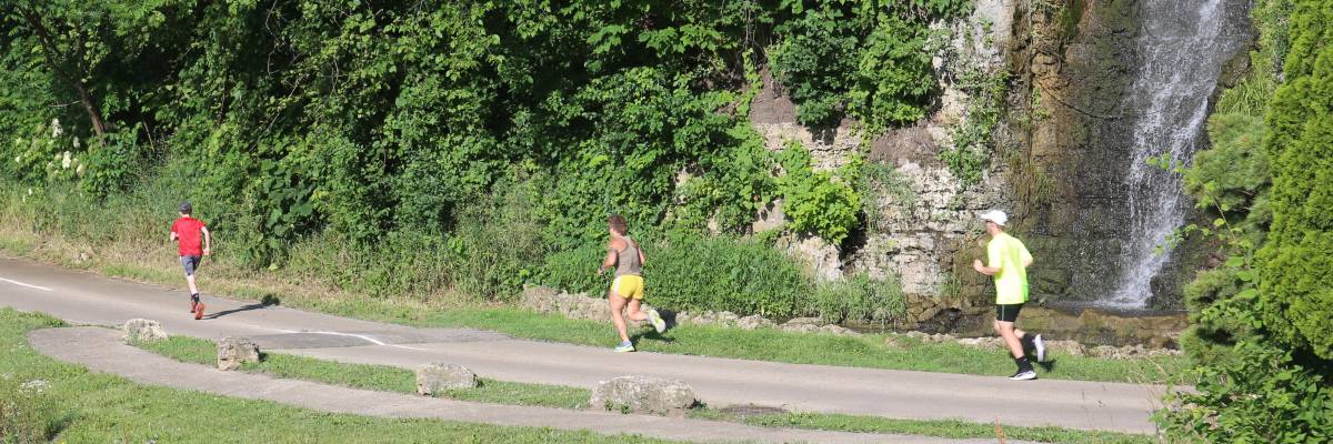 Starting in the parking lot near mini golf and the baseball field, along Yellow Creek, past the Krape Park waterfall, and twin caves, over two scenic bridges then out the tree lined south entrance of the park and return. Refreshments and awards after the race int eh Gunkle Shelter. The course is certified by USA Track and Field (code IL-12088-JW) and recognized by RRCA.