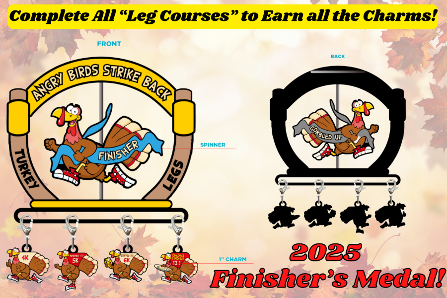 5K = Includes One Spinner Turkey Medal and One 5K Turkey Charm (Mashed It 5K Charm)