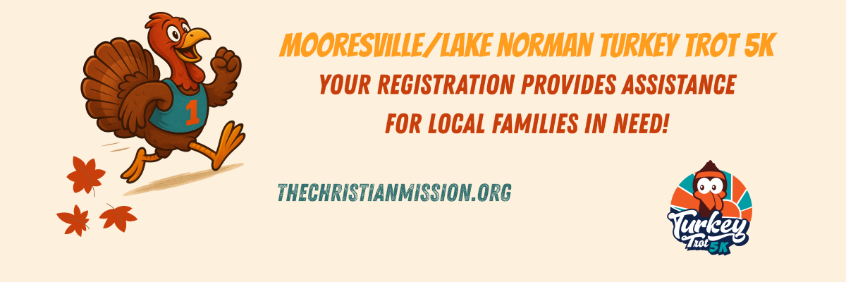 Join us for the 15th Annual Turkey Trot 5K—a fun, family-friendly way to kick off your Thanksgiving while making a meaningful impact in our community! All proceeds benefit The Christian Mission, providing food, clothing, housing assistance, case management, and educational programs to over 6,000 local individuals and families in need.