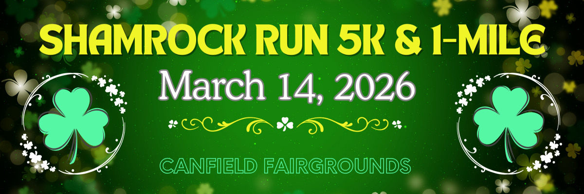 Please join us for the 8th annual Shamrock Run 5K and 1-Mile taking place on Saturday, March 14th, 2026, at the Canfield Fairgrounds.