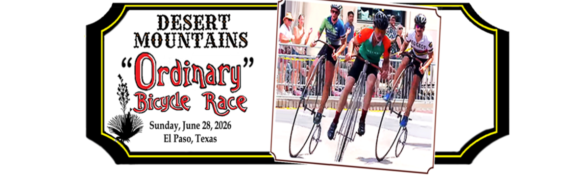This is a criterium race on antique-style, high-wheel bicycles with two 20-minute heats, followed by a 30-minute championship race. The course is one city block adjacent to San Jacinto Plaza in the heart of downtown El Paso.